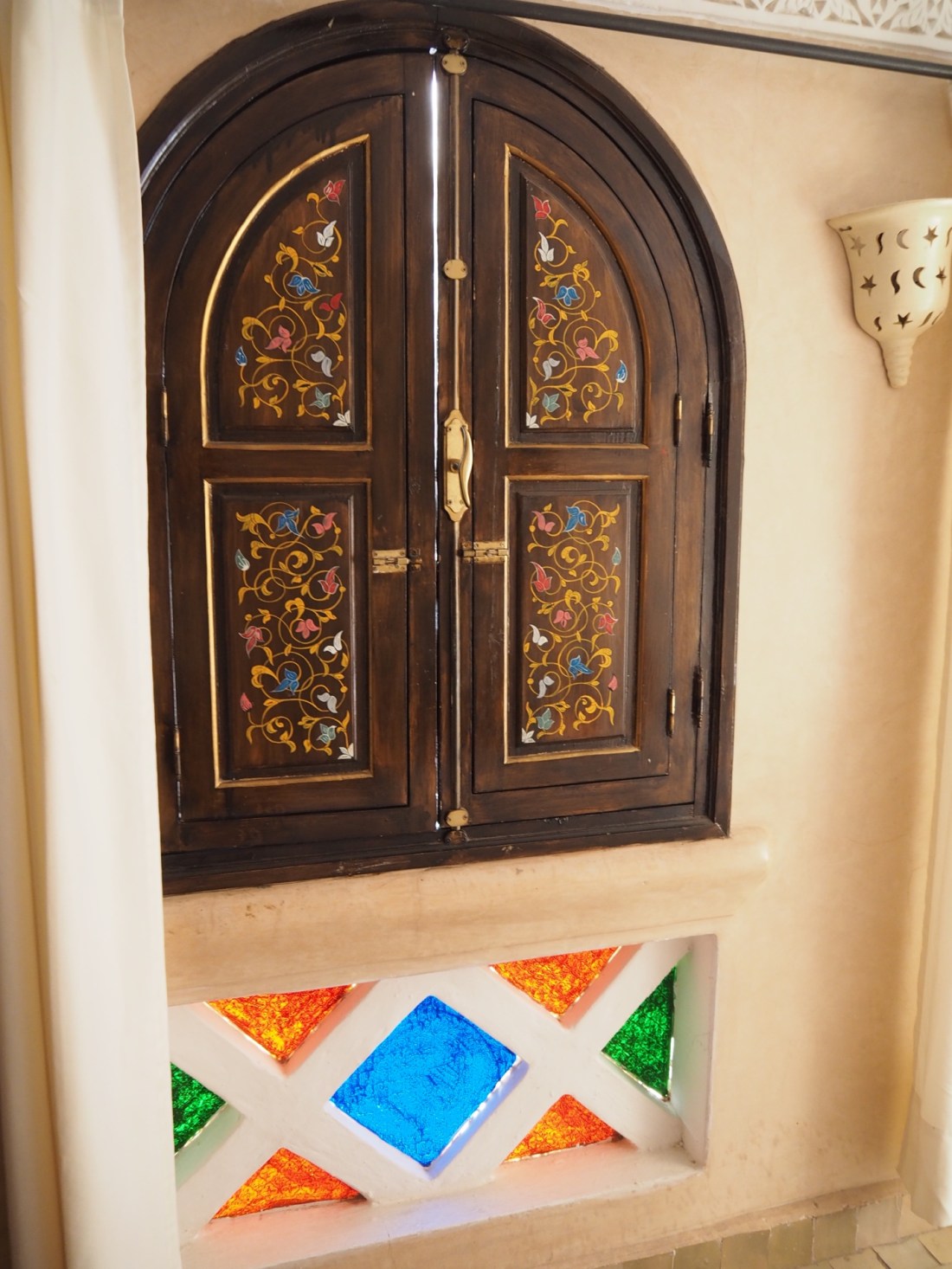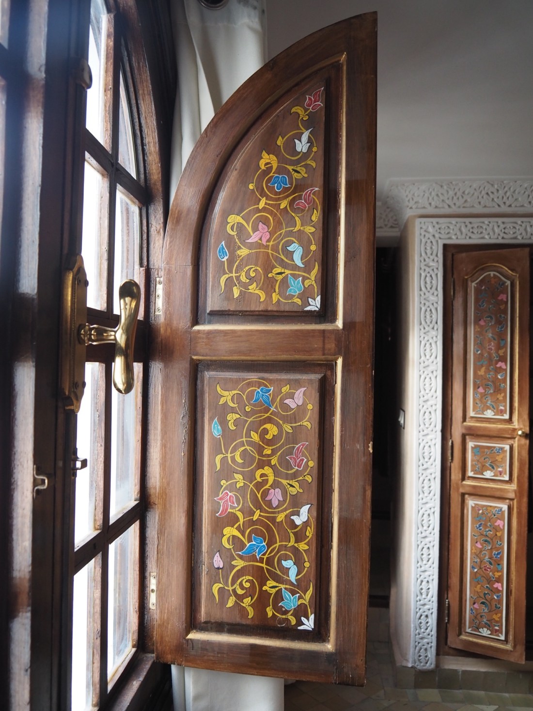 Here, the woodwork was painted with flower motifs. Here’s the side of the shutter that faced the room,