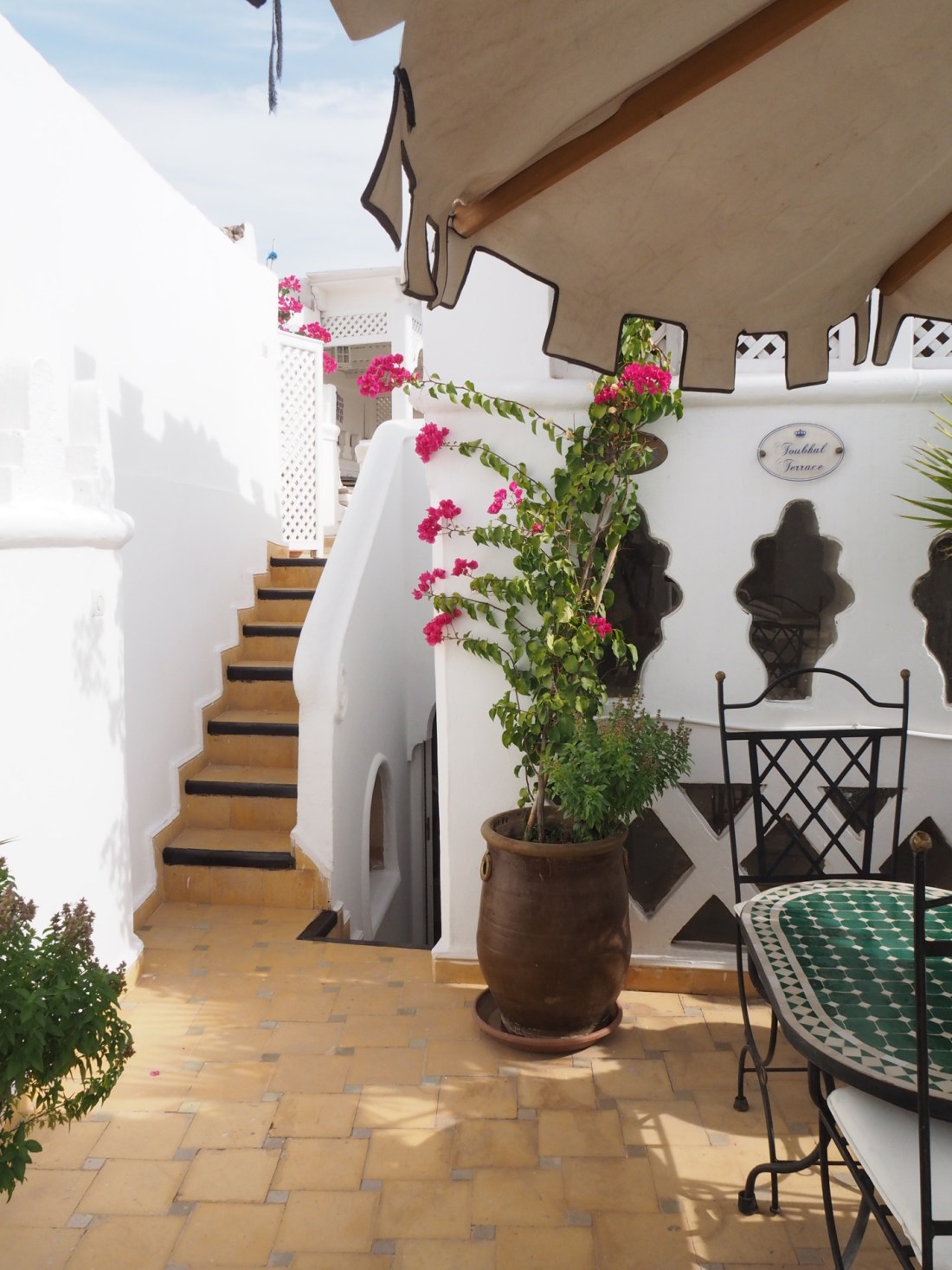 Where several of us sat one evening to enjoy a glass of wine and the breeze (the temperature in Marrakesh had dropped to 95 this day)