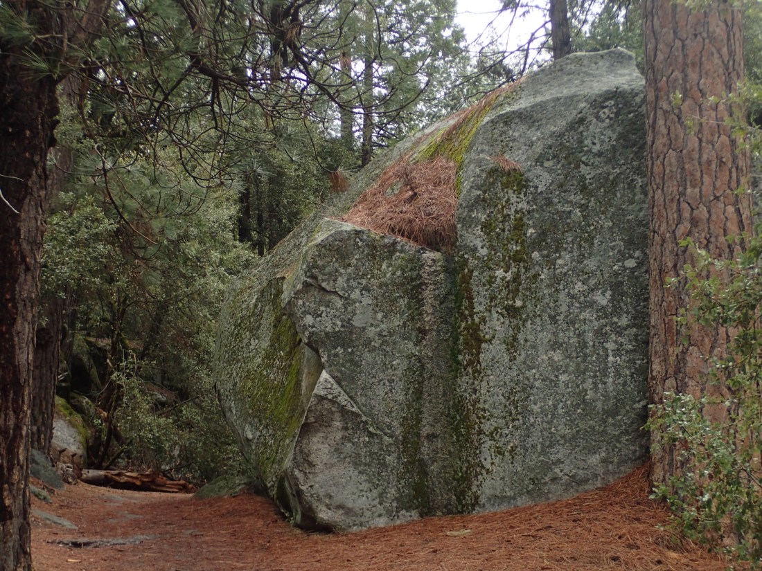 I was really taken with this huge boulder alongside the path, with needles from its companion Ponderosa pine