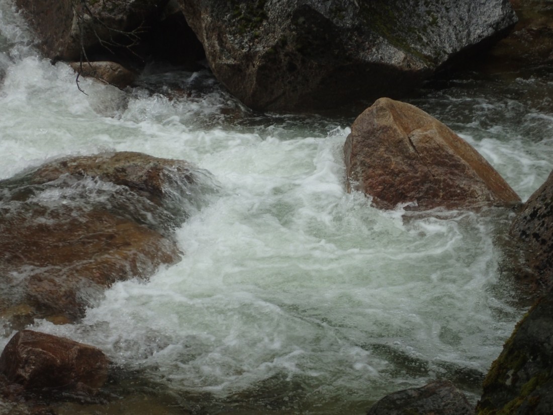 And everywhere is the sound of white water, cascading over the blocks of granite in Tenaya Creek