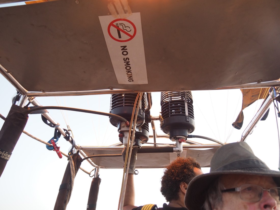 and soon we were invited to board. This involved climbing up the outside of the basket, using the foot holes placed in the sides (and, for me, getting an appreciated “boost” from one of the team members below).