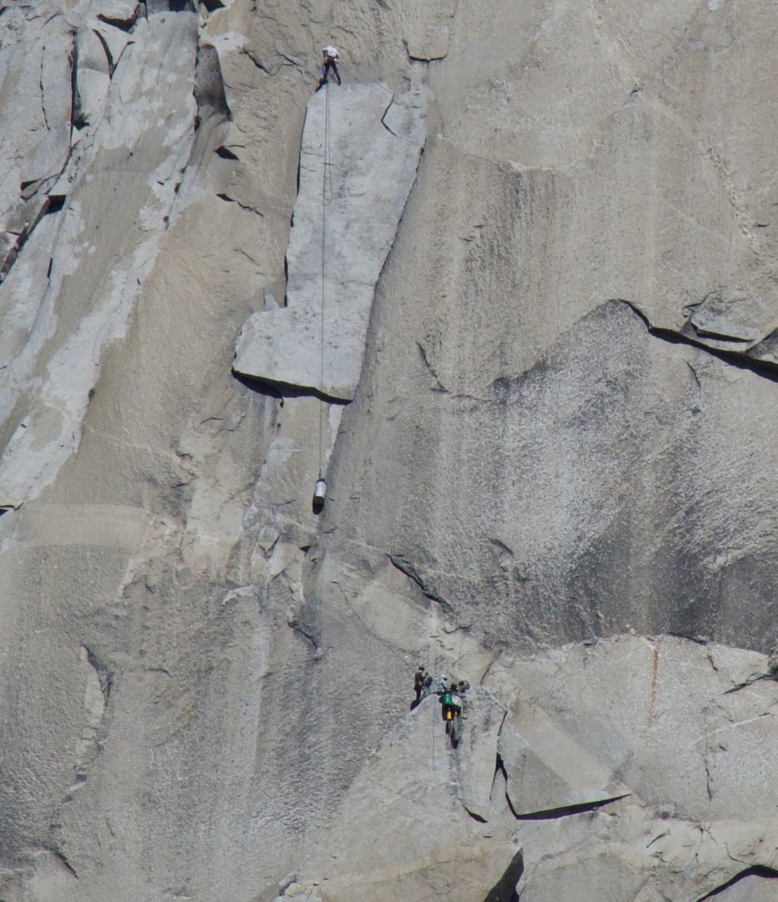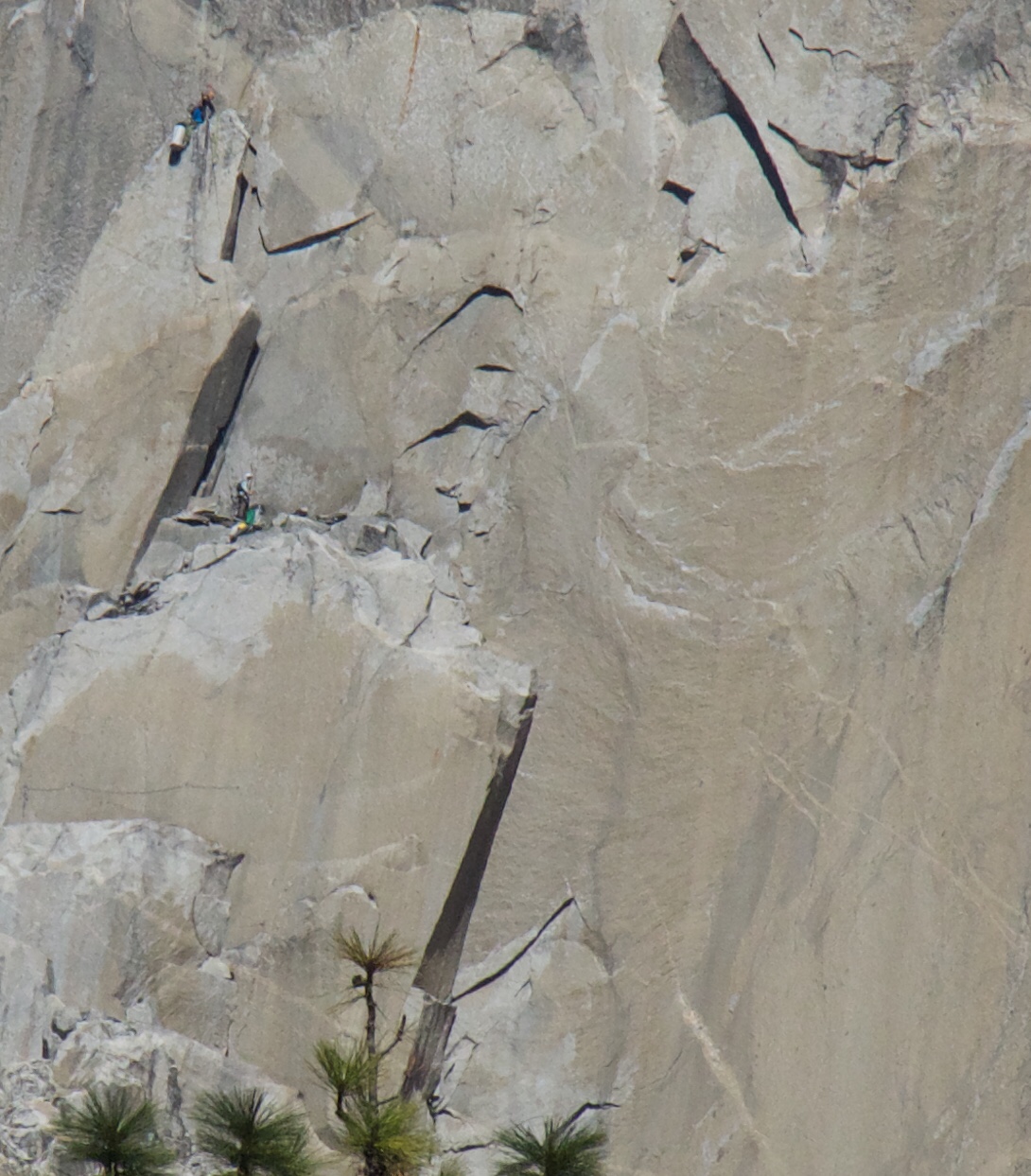 And you can clearly see that the members of the group further down the granite are belayed by the leader above. He seems to be standing on another ledge above them.